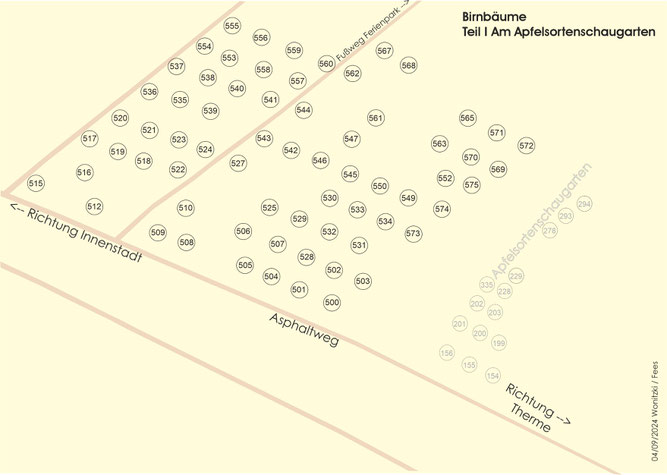 Lageplan der Birnenbäume Nr. 500 bis 575